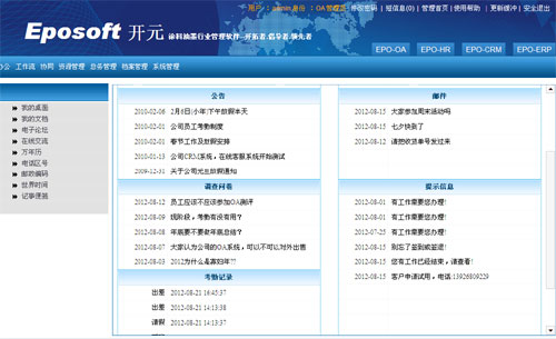 EPO-OA是专门针对精细化工企业的办公自动化管理解决方案。该系统包括个人办公,工作流,资源管理,档案管理,总务管理,协同办公等功能模块,帮助企业将日常办公电子化,实时跨部门,跨地域协作办公,达到节省时间,节省成本,提升工作效率的目的。