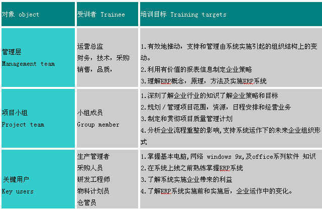 多层次的培训服务 在项目实施过程中,我们为精细化工行业客户提供不同类型,多层次的培训服务。实施顾问通过制定详细的培训计划,丰富的授课技巧和多彩的培训教材,帮助项目小组成员快速完整的撑握系统各方面的操作和使用。系统培训分系统基础培训计划,系统单据操作培训计划,系统报表应用培训计划三部份。详细情况如下: